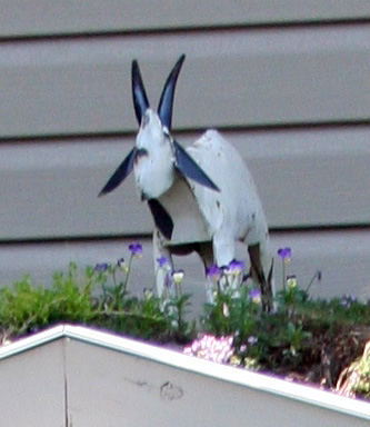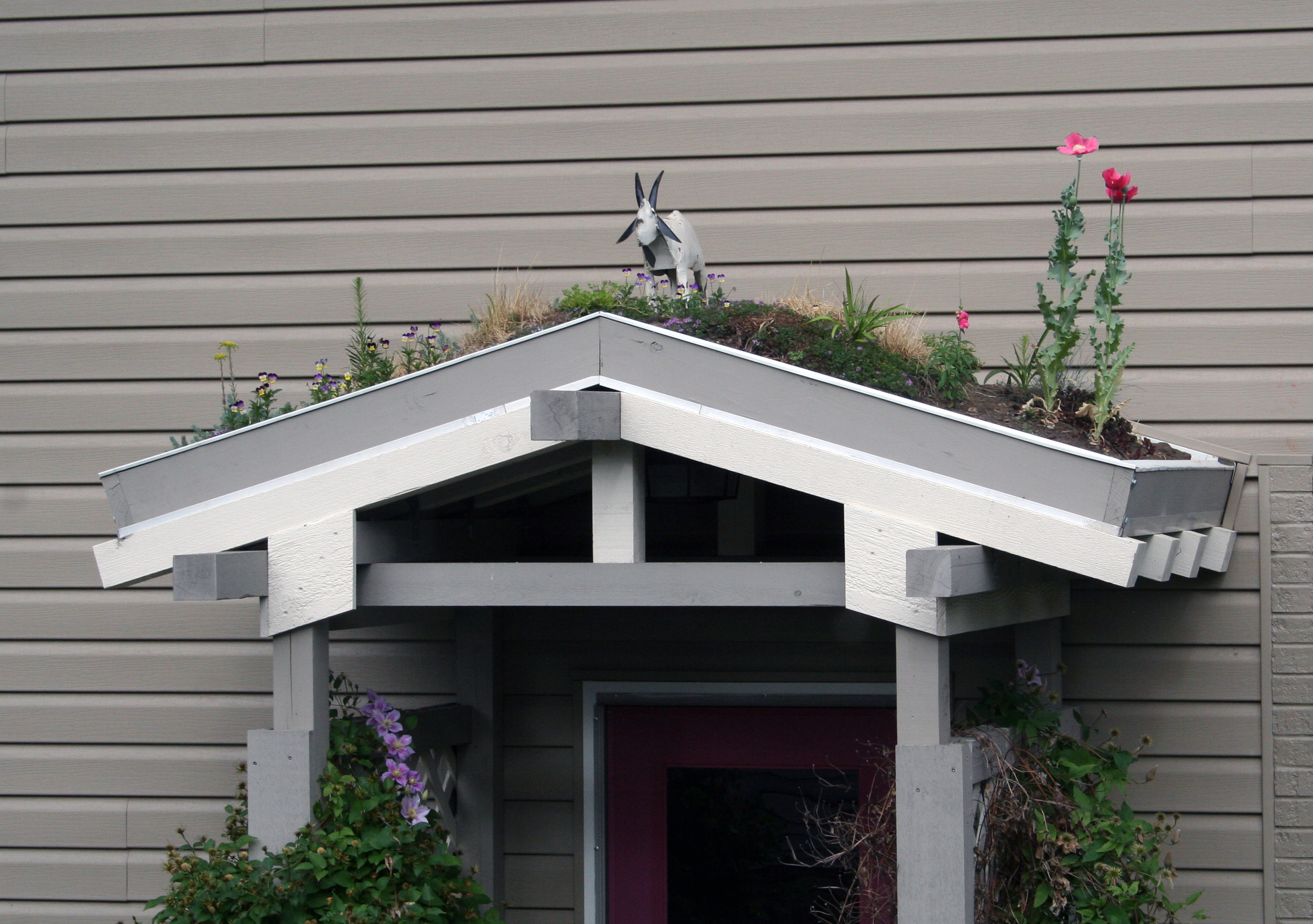 This spring, they “roofed” the porch they built with dirt and plants. And a goat.