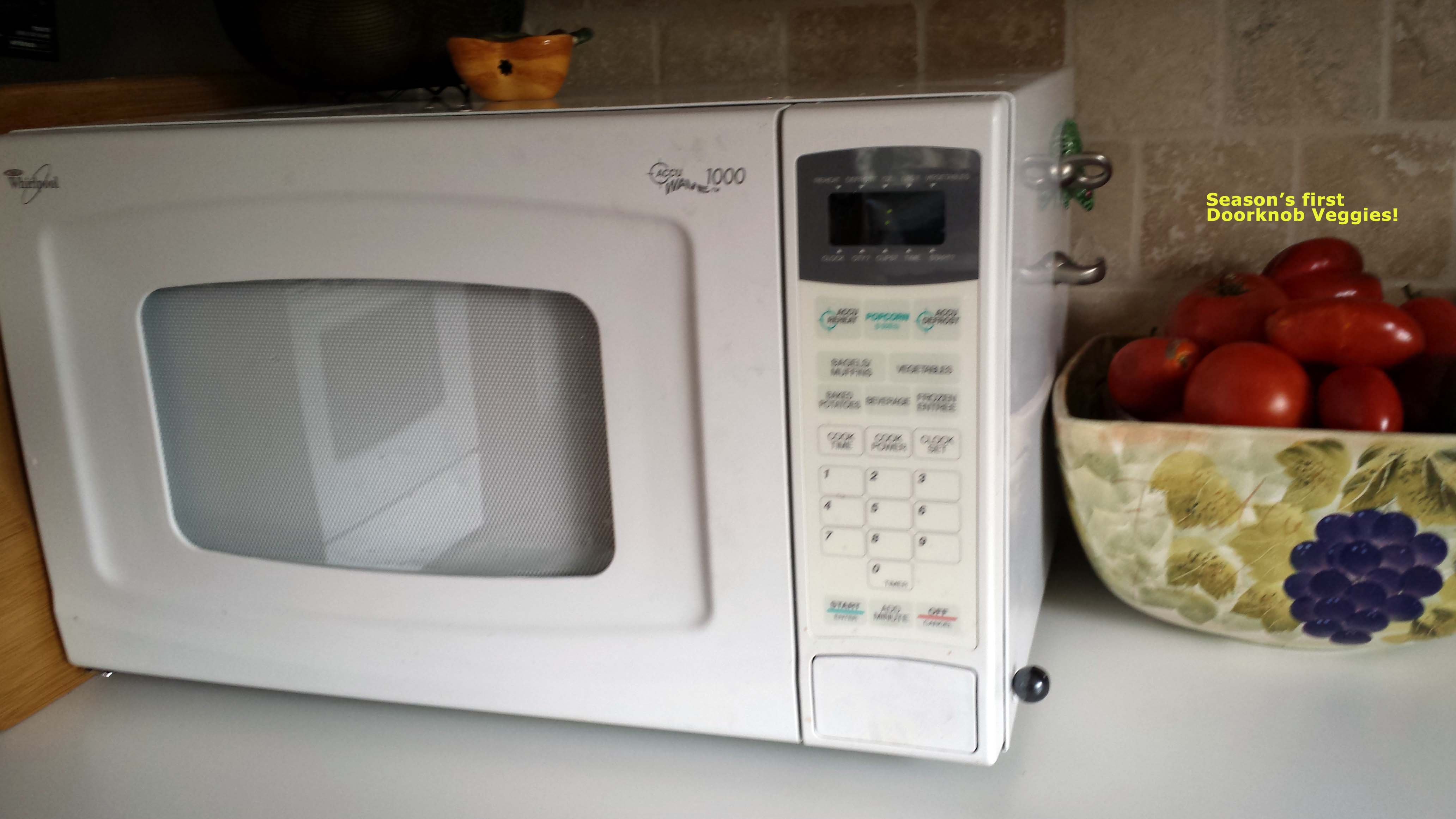 The microwave over the stove has not worked since long before the dishwasher, but we had an old one that we’ve been using. A counter model—I’ll admit, I’m just as excited about getting my counter space back as I am about not having to hand wash six thousand McDonald’s cups each week. I may start cooking again!