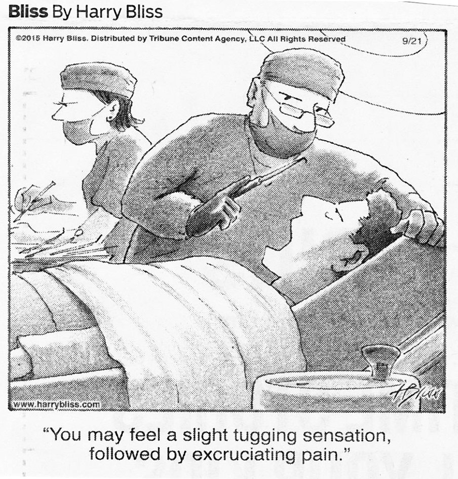 I had to have a tooth extracted a couple of weeks ago. It was a horrendous experience. Three and half hours and four shots of Novocain later, I was one tooth shorter and traumatized for life. They had to dig it out. Practically climbing onto my chest for leverage. Drilling, splintering, and gouging tooth fragments from my jaw bone. There was no escape from the torturous pressure and horrifying sounds. Whirring drills, cracking molars and flying bits of pulp, dentin, and enamel.