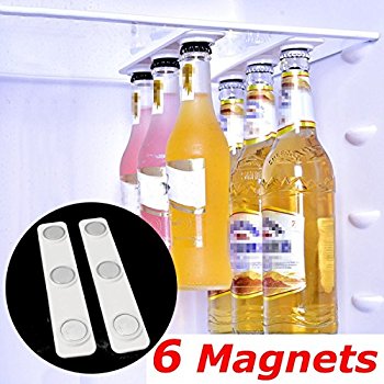 Magnetic bottle holder for the fridge.