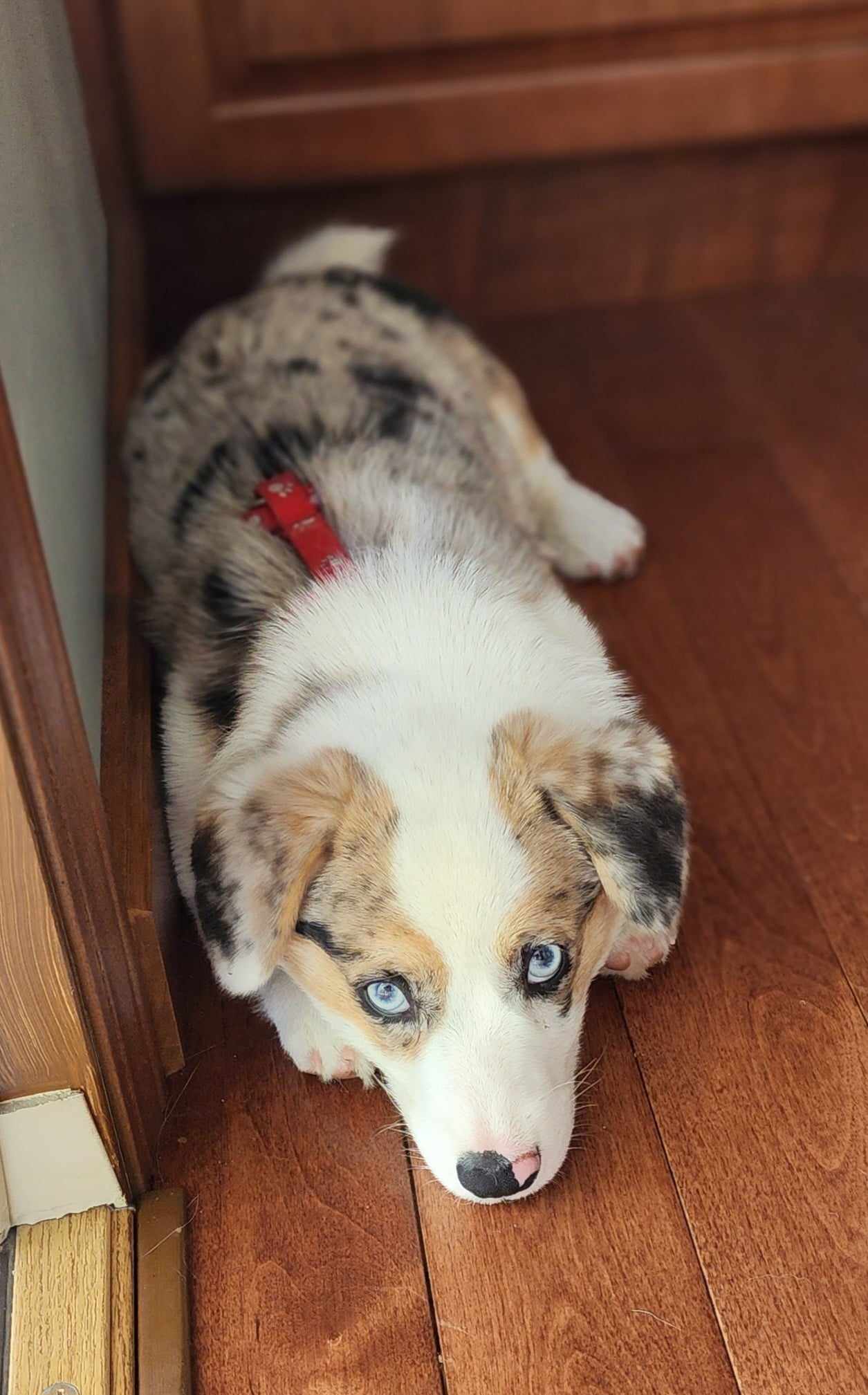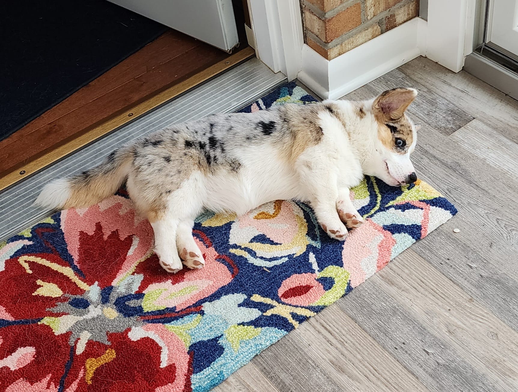 For your viewing and awww-enjoyment, I offer you new photos of the pup with the blue-blue eyes! The one with all the moxie. She’s the corgi that makes everyone a fan! What’s her name? It’s ROXY!